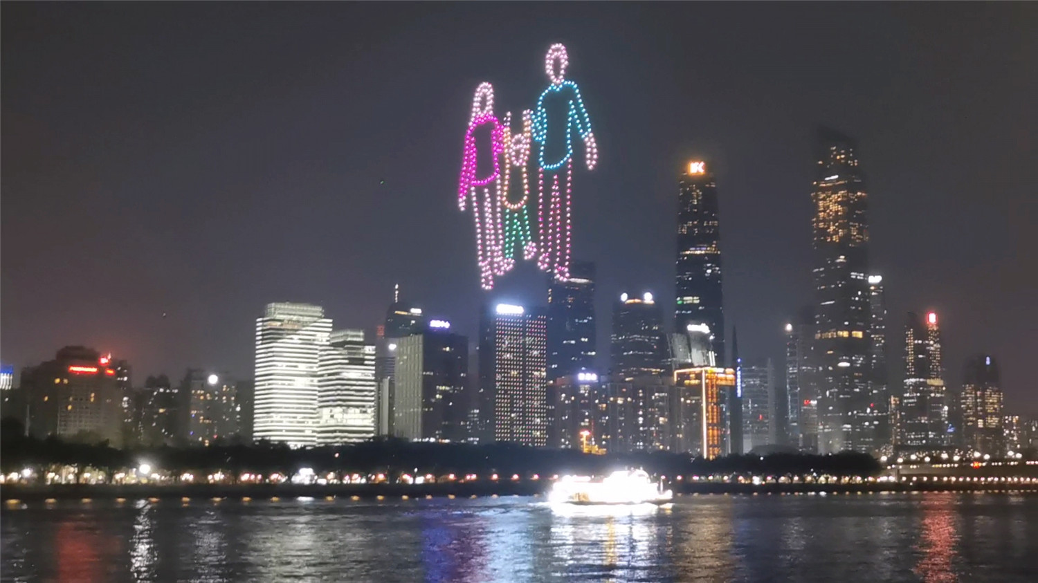 在珠江夜空上秀出璀璨奪目的“星”圖。