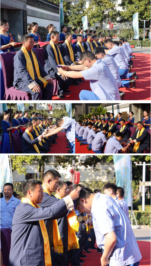 “一拜感念師恩,傳承匠心;二拜技藝超群,通古博今;三拜傳承酒脈,報國為民。”……洋河人重師道,尊師道,以弦歌不輟、薪火相傳的精神,表達對綿柔品質的不懈追求,師徒間的情誼在拜師儀式中建立、沉淀,既有同事間的相互合作,也有前輩對后輩的幫扶。